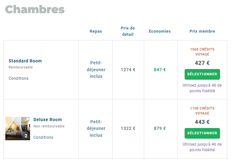 Sans oublier, comme vous pouvez le constater dans la simulation, que vous allez cumuler 1 150 crédits voyage, que vous pourrez utiliser pour réduire de 11,50€ le coût de votre prochaine réservation. Si vous êtes un membre Élite, vous pourrez également utiliser 46 de vos points de fidélité au moment du paiement (pour déduire 46$ supplémentaires). Ainsi, le coût de l'hôtel ne sera plus que de 414€.